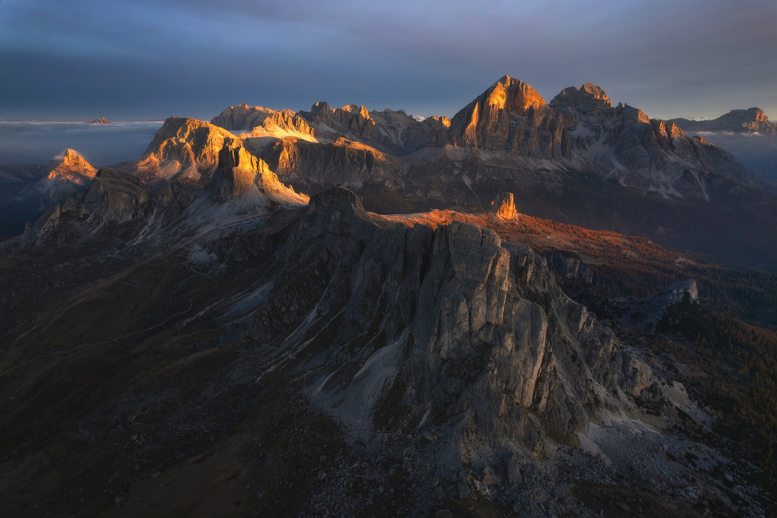 Am petrecut mai bine de o săptămâna pe potecile acestor munți încărcați de culorile toamnei, iar vremea a ținut totuși cu noi, deși a mai plouat pe alocuri ascunzând câteva răsărituri si apusuri. După atâtea călătorii, selecția imaginilor devine de la an la altul tot mai drastică, am ales ca de fiecare data numai spuma, dar inevitabil au mai rămas multe cadre ce mi-au rămas in minte, la care-mi doresc o anumită lumină si atmosferă, motiv pentru care trebuie neaparat sa ne mai întoarcem :) Dolomiții sunt acei munți pe care după ce i-ai explorat cât de puțin, au ceva aparte ce te atrage la ei si te face sa te reîntorci de fiecare data nerăbdător si sa descoperi câte alte minunății mai pot ascunde.